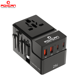 • Name:FOXCAN-T25W Fast Charge Travel Adapter 10A Rated Current with Cable Multi-USBUniversal Worldwide Plug
