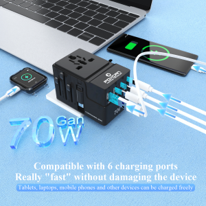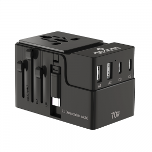 • Name:FOXCAN-T70W GaN Universal Travel Adapter with Built-in Retractable Cable and International Plugs for Global Travel