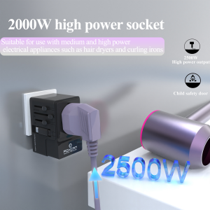 FOXCAN-T100W Multifunctional GaN Travel Adapter Type-C and USB Wall Charger Universal UK/US/EU/AU Plug Compatibility