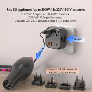 • Name:FOXCAN_S750 2000W Voltage Converter and Adapter Combo 220V to 110V for Eurpoen Travel with 2USB-C and 2USB-A Suit for Hair Dryer
