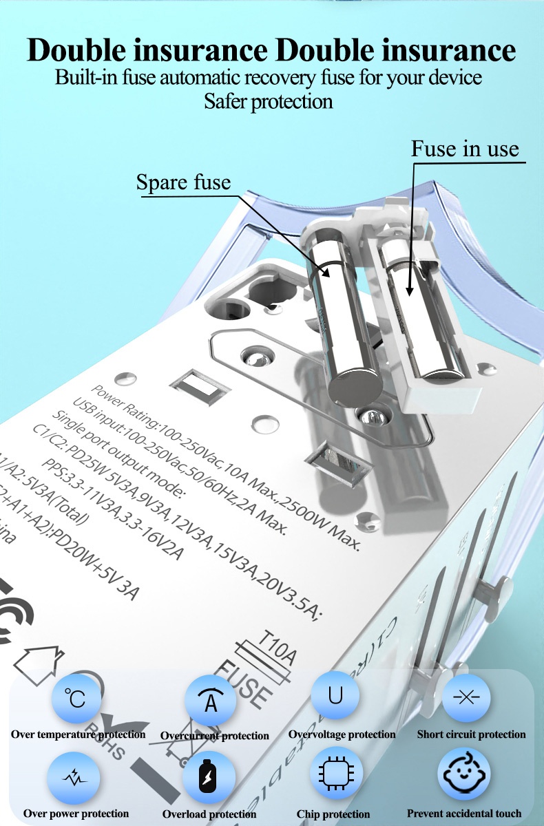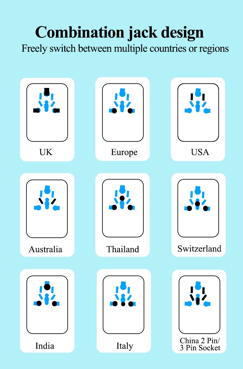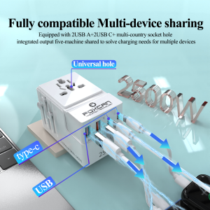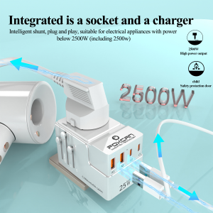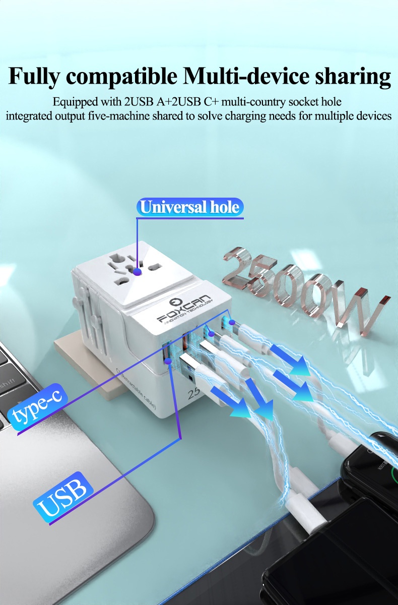 • Name:FOXCAN-T25 GaN PD25W Universal Travel Adapter with 2USB-C+2USB-A Charger US Europe Australia Britain Plug Adapter