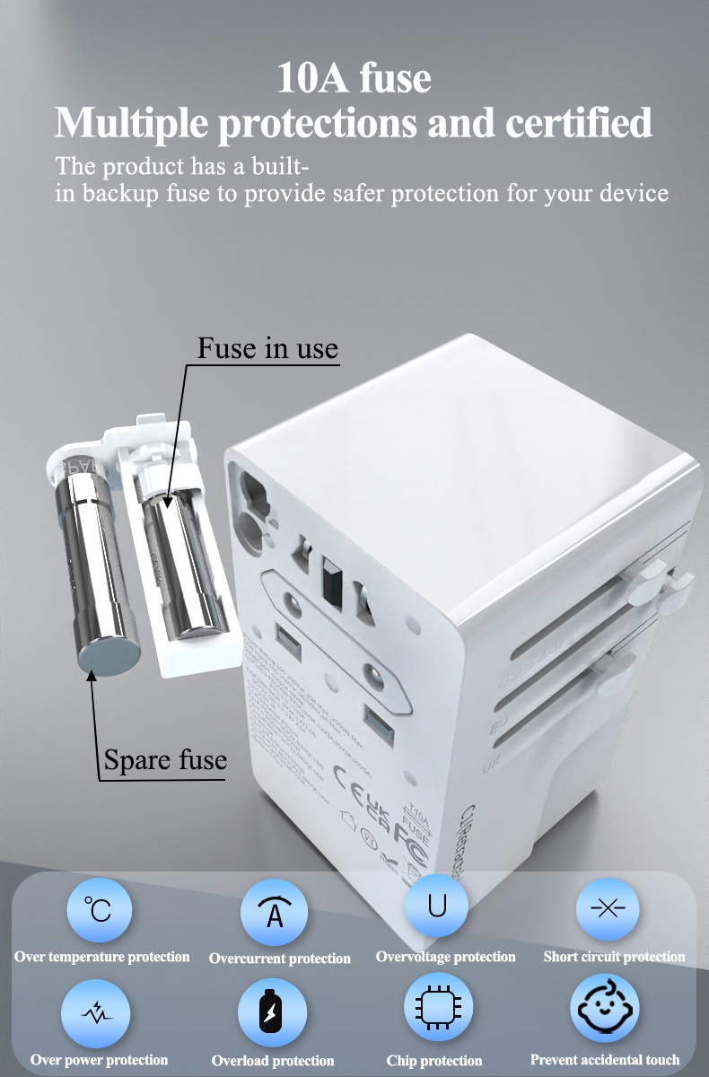Built-in one 10A Fuse and one spare fuse