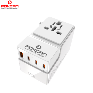 FOXCAN-T100 GaN PD100W Universal Travel Adapter with 2USB-C+2USB-A Charger US Europe Australia Britain Plug Adapter